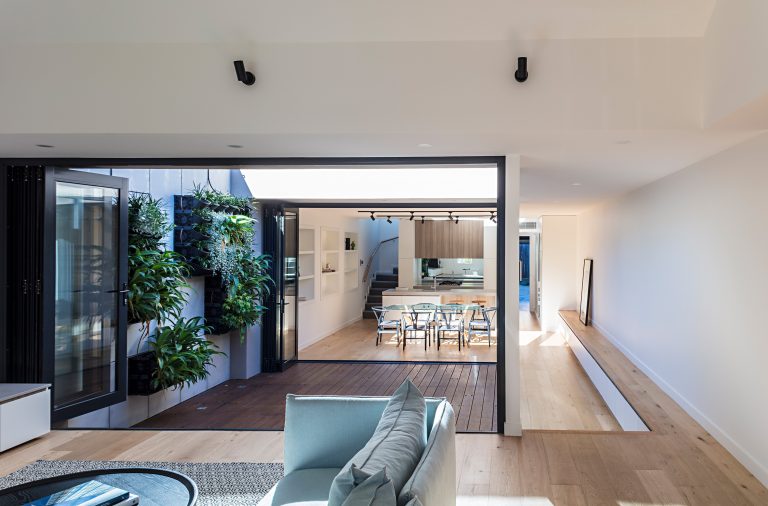 On a very small 306 m2 site in the heart of St Kilda. dubois: crafted two deceptively spacious townhouses behind the existing heritage façade. double garages, 3 bedrooms each with internalised courtyard spaces.